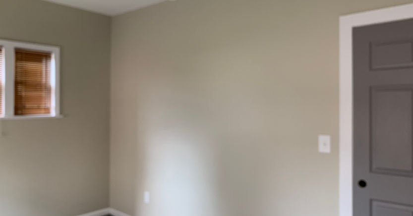 Contemporary paint colors, track lighting, color coordinated custom blinds and great natural light